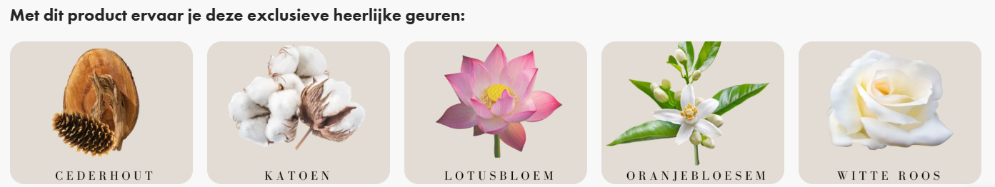 De geur van Fresh Cotton geurzakjes verwelkomt je met een heerlijke geurmix van zomerbloemen, talkpoeder en jasmijn. Deze geur combineert de verfrissende noten van zomerbloemen met de zachte en poederige nuance van talkpoeder, versterkt door de betoverende geur van jasmijn. Plaats deze geurzakjes overal waar je een frisse en bloemige geurervaring wilt beleven.