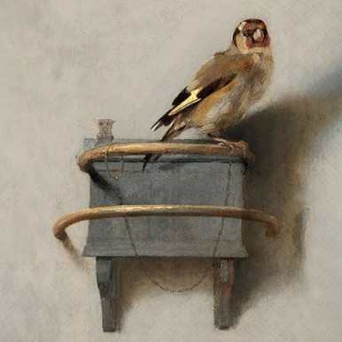 Het servet The Goldfinch ook wel Het Puttertje genoemd, is gebaseerd op het wereldberoemde schilderij van de Nederlandse meester Carel Fabritius uit 1654. De achtergrond heeft, lichtbeige tot gebroken witte kleur.