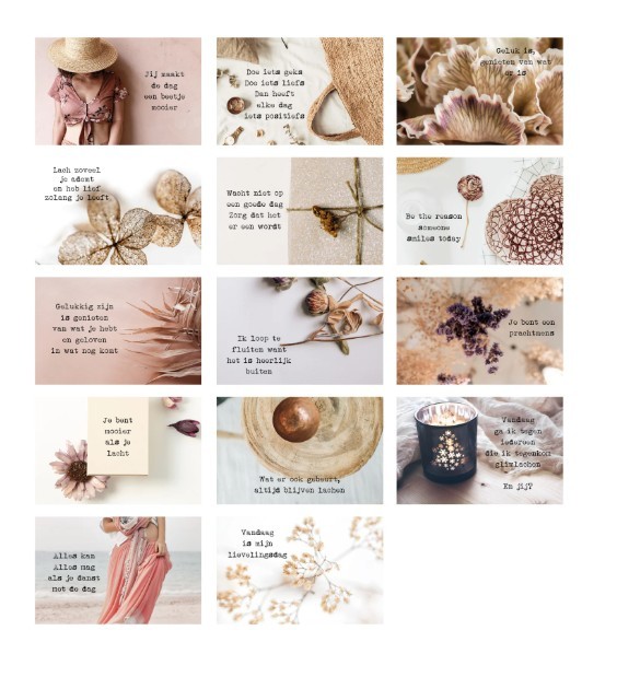 Positieve woorden geven positieve gedachten, positieve energie, een blij gevoel. Een paar mooie woorden zijn soms al genoeg om een groots gevoel te krijgen. Een glimlach op je gezicht te toveren. Daarom dit doosje, een 'Doosje met een Glimlach'. Een mooi bewaardoosje met 14 'goed gevoel' kaartjes. 14 mooie kaartjes om twee weken lang, iedere dag te beginnen met een positieve start. Be happy!